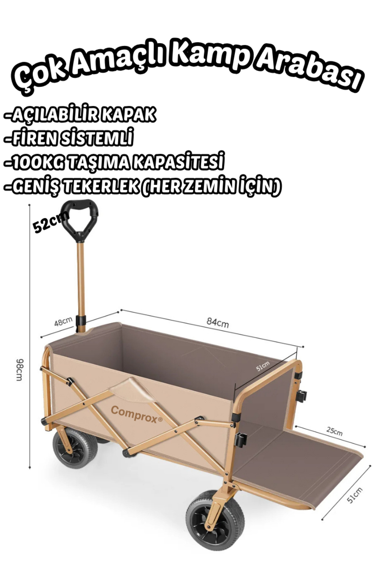 Comprox XL Büyük Vagon Kamp Arabası ,Alışveriş Arabası, Katlanır Taşıma Arabası Frenli Ve Geniş Tekerlekli