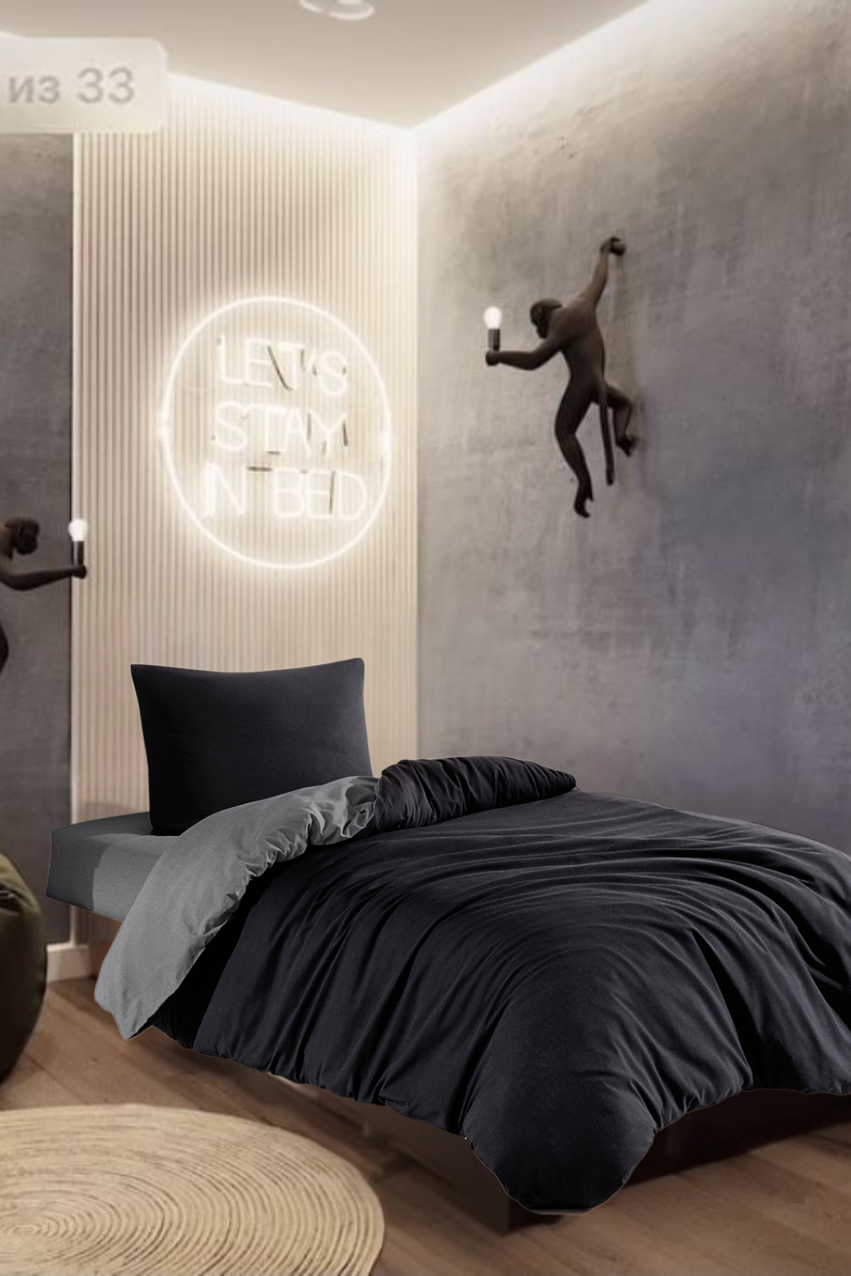 Lotusline Home Minikaro Füme Tek Kişilik Pamuklu Nevresim Seti Çift Taraflı