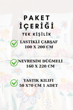 conzaliza Tek Kişilik Nevresim Takımı | Lastikli Çarşaflı| Pamuklu Tam Takım