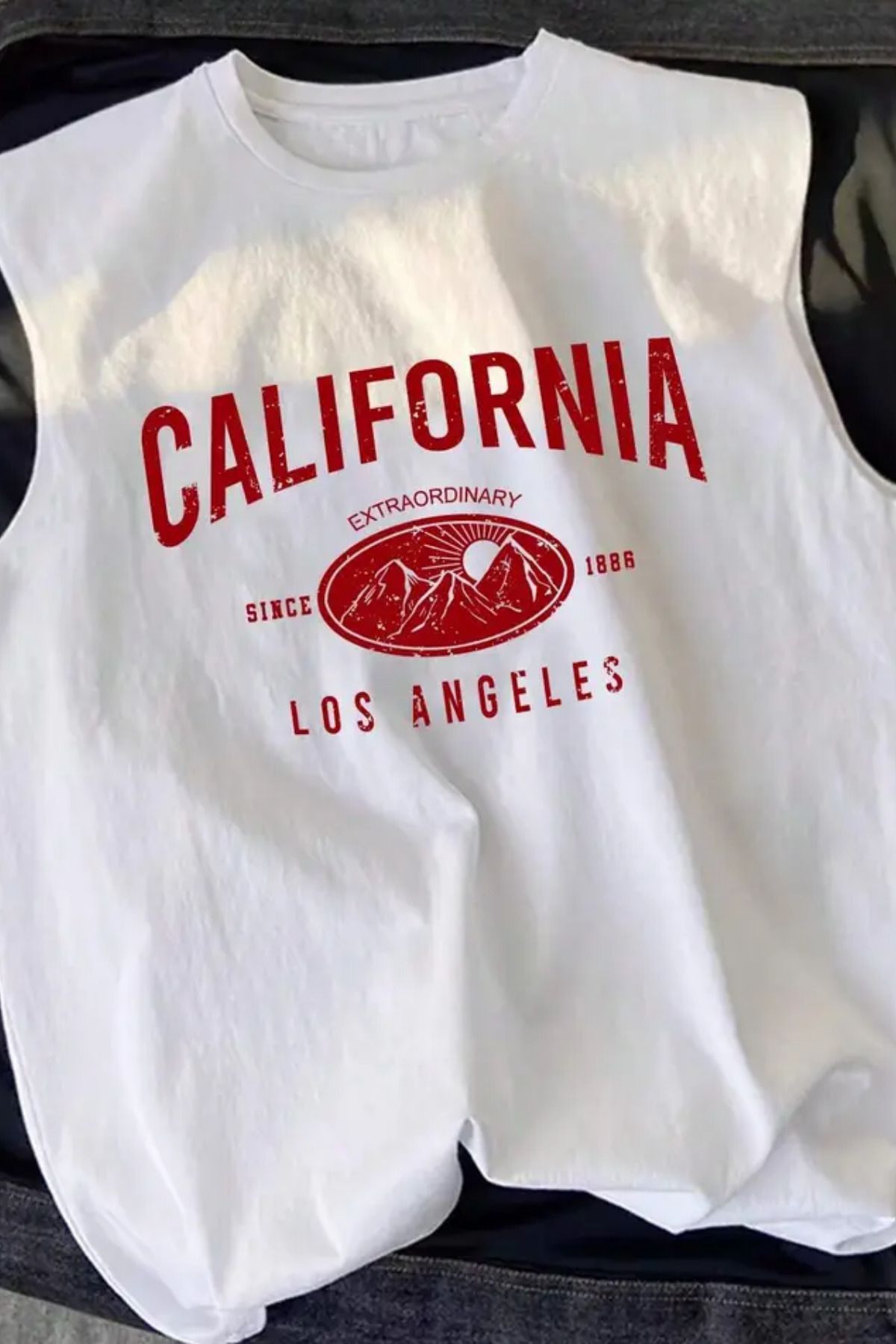 COOL TARZ California Baskılı Beyaz Kolsuz Atlet tshirt Erkek Sıfır Kol Oversize T-SHİRT
