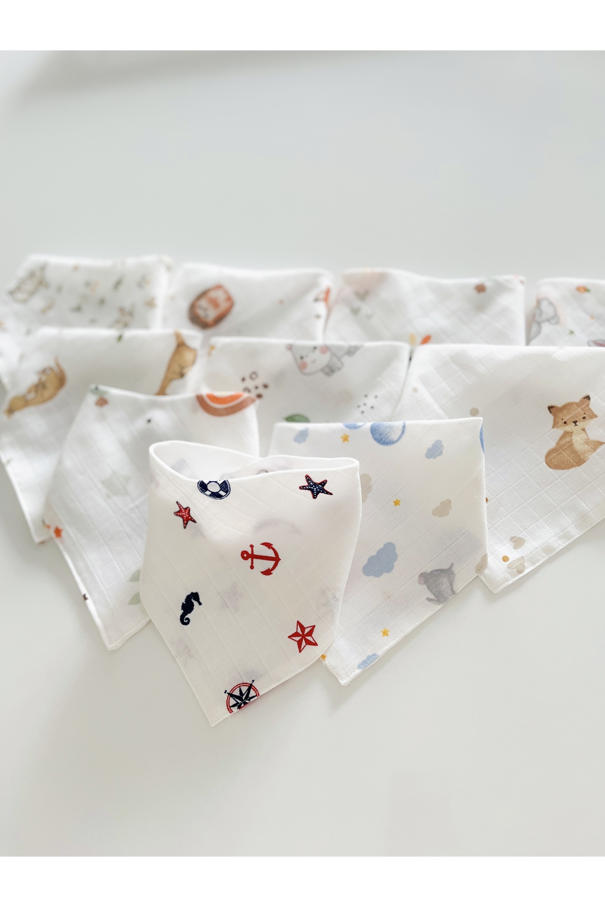 COOLMINIES 5 Adet Karışık Erkek Desen %100 Pamuk Müslin Kumaş İki Çıtçıtlı Bebek Önlük,Salya Önlüğü,Bebek Fular