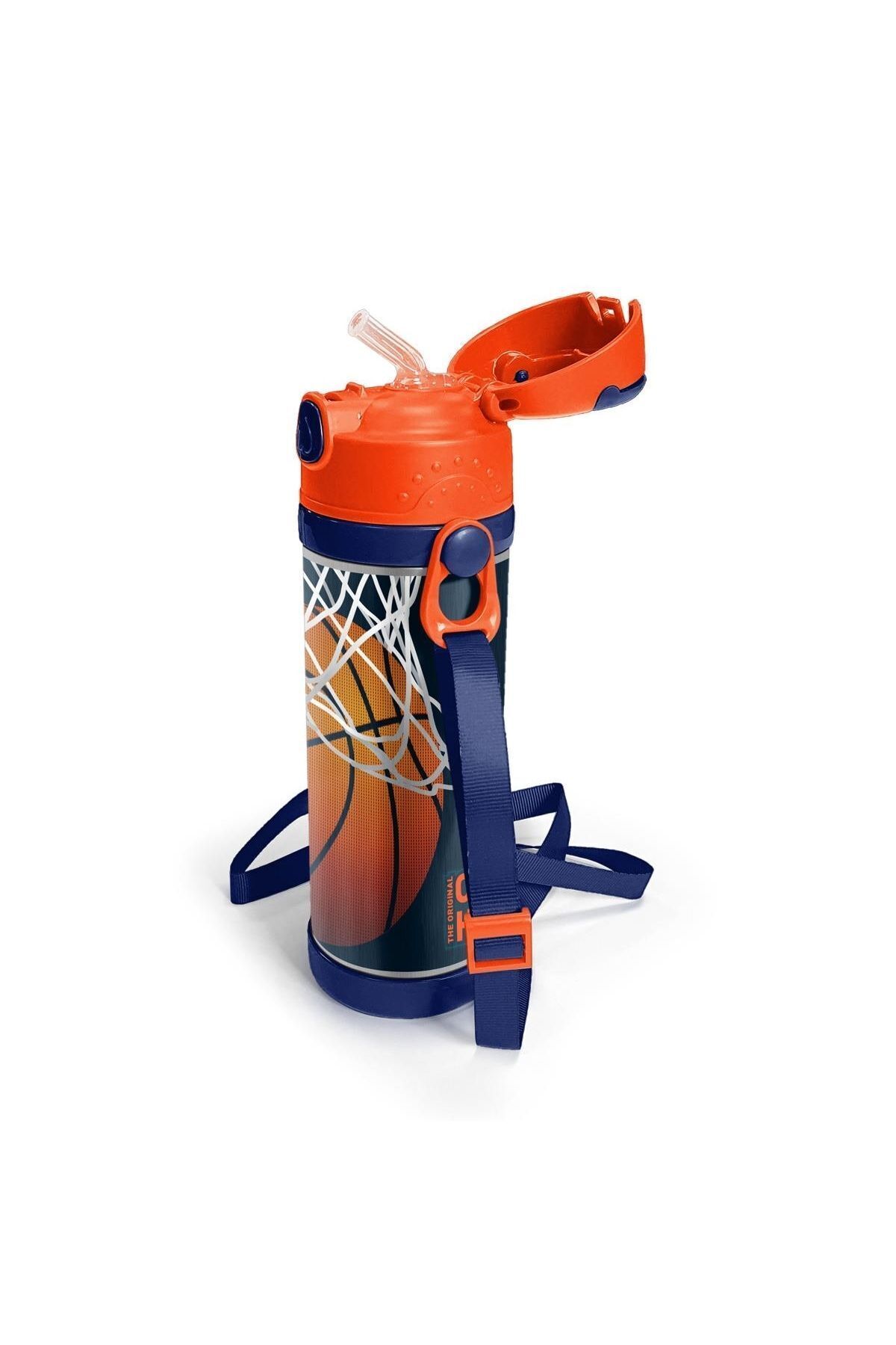 Coral High Pipetli Çelik Termos 500 ml Lacivert Turuncu Basketbol Desenli