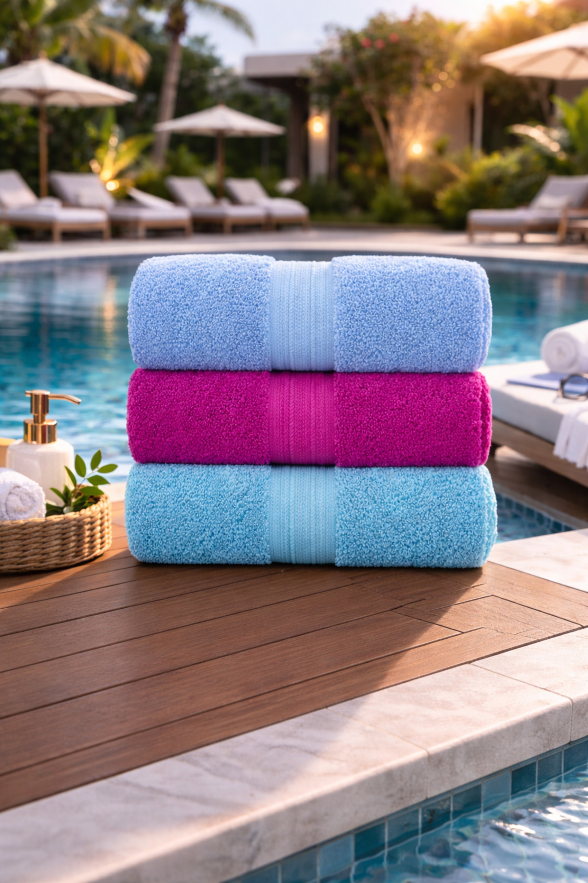Cotton 3’lü %100 Pamuklu Havlu Seti Çavuş Bordür 50×90 El ve Yüz Havlusu