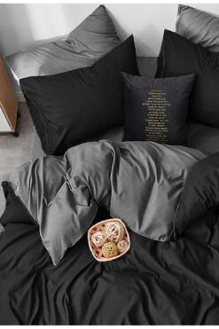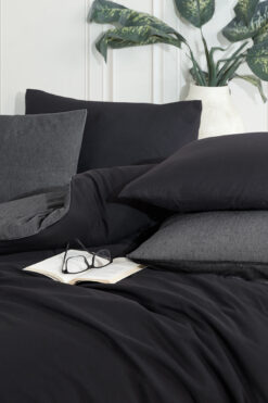 İQON Lastikli Çarşaflı Nevresim Takımı Çift Kişilik Gri-siyah Blackgrey