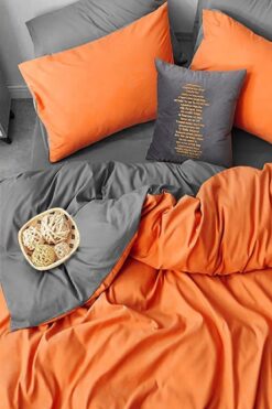 İQON Lastikli Çarşaflı Nevresim Takımı Çift Kişilik Orange Turuncu Gri