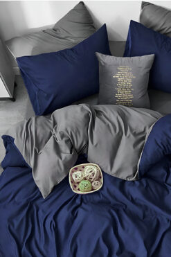 İQON Lastikli Çarşaflı Nevresim Takımı Çift Kişilik Lacivert-Gri