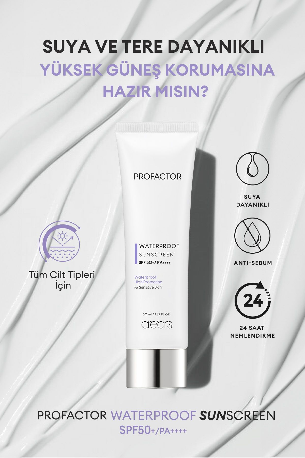 Cre’ars Suya Dayanıklı Ağırlık Yapmayan Güneş Kremi Cre’ars Profactor Waterproof Sunscreen SPF50+/PA++++