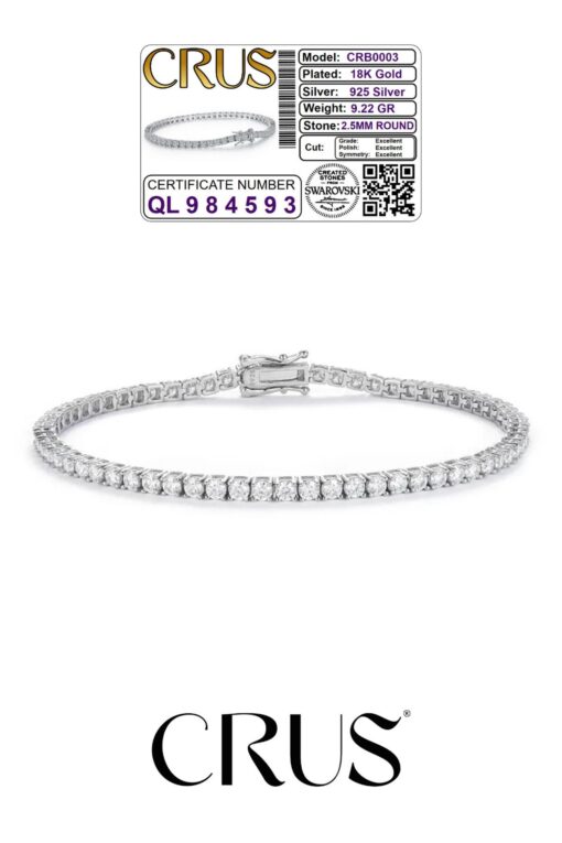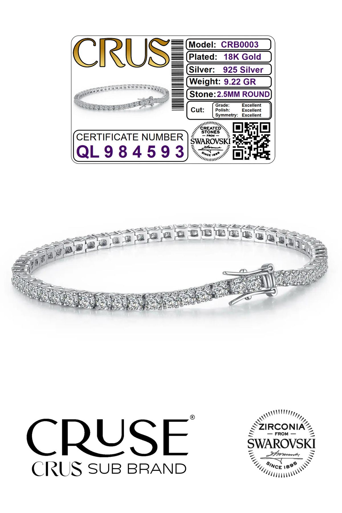 Crus Gümüş 2.5 Mm Su Yolu Bileklik – 18k Beyaz Altın Kaplama, Sertifikalı