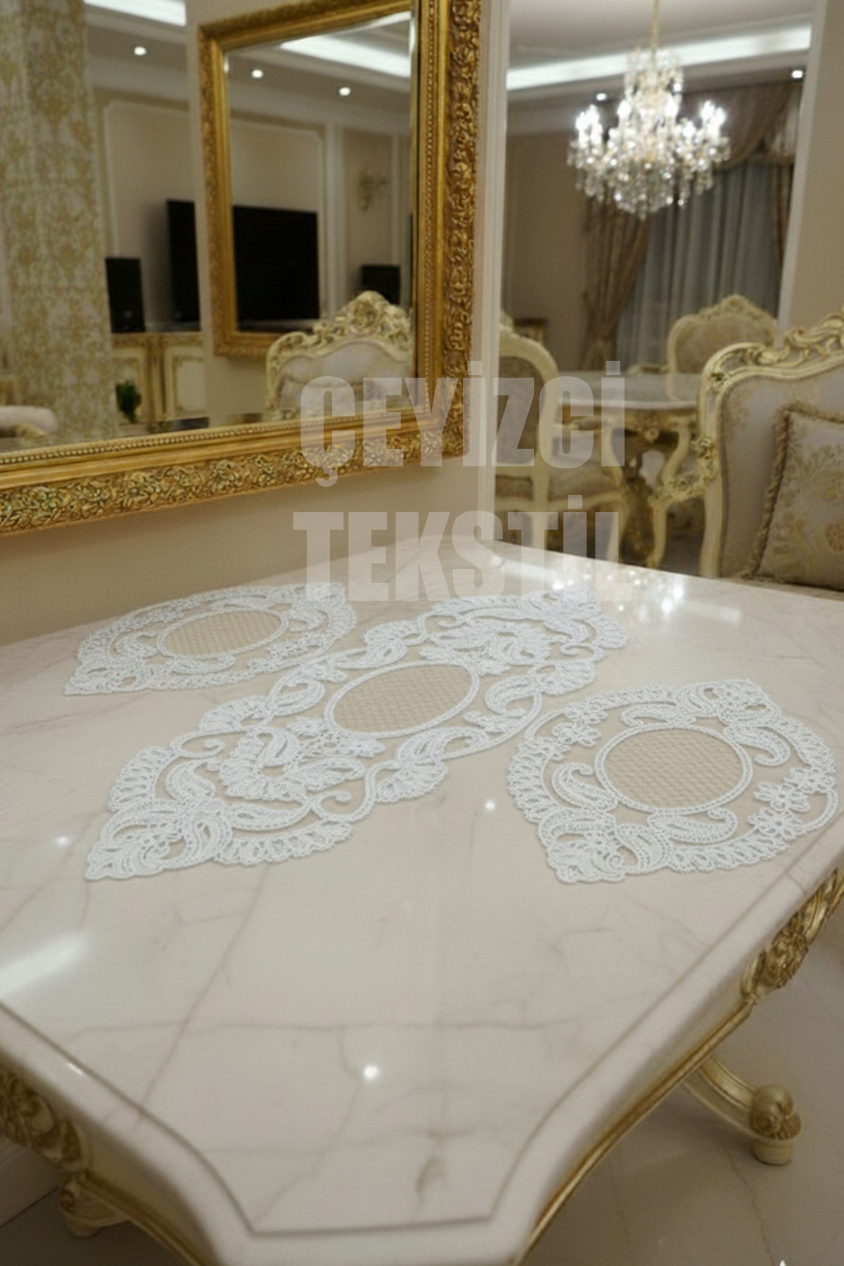 Çt Çeyizci Tekstil Salon Takımı, Yatak Odası 3 Parça Sehpa Örtüsü, Masa Örtüsü 3 Parça Oda Takımı