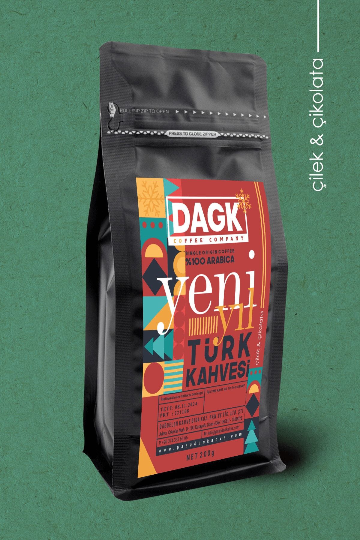 Dagk Türk Kahvemiz Yeni Yıla Özel Serisi ile Çikolata ve Çilek Aroması ile harmanlanmıştır.