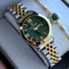 Daniel Klein %100 Orijinal Altın Gümüş Kordon Yeşil Kadran Kadın Kol Saati Bileklik Hediyeli