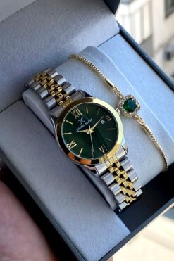 Daniel Klein %100 Orijinal Altın Gümüş Kordon Yeşil Kadran Kadın Kol Saati Bileklik Hediyeli