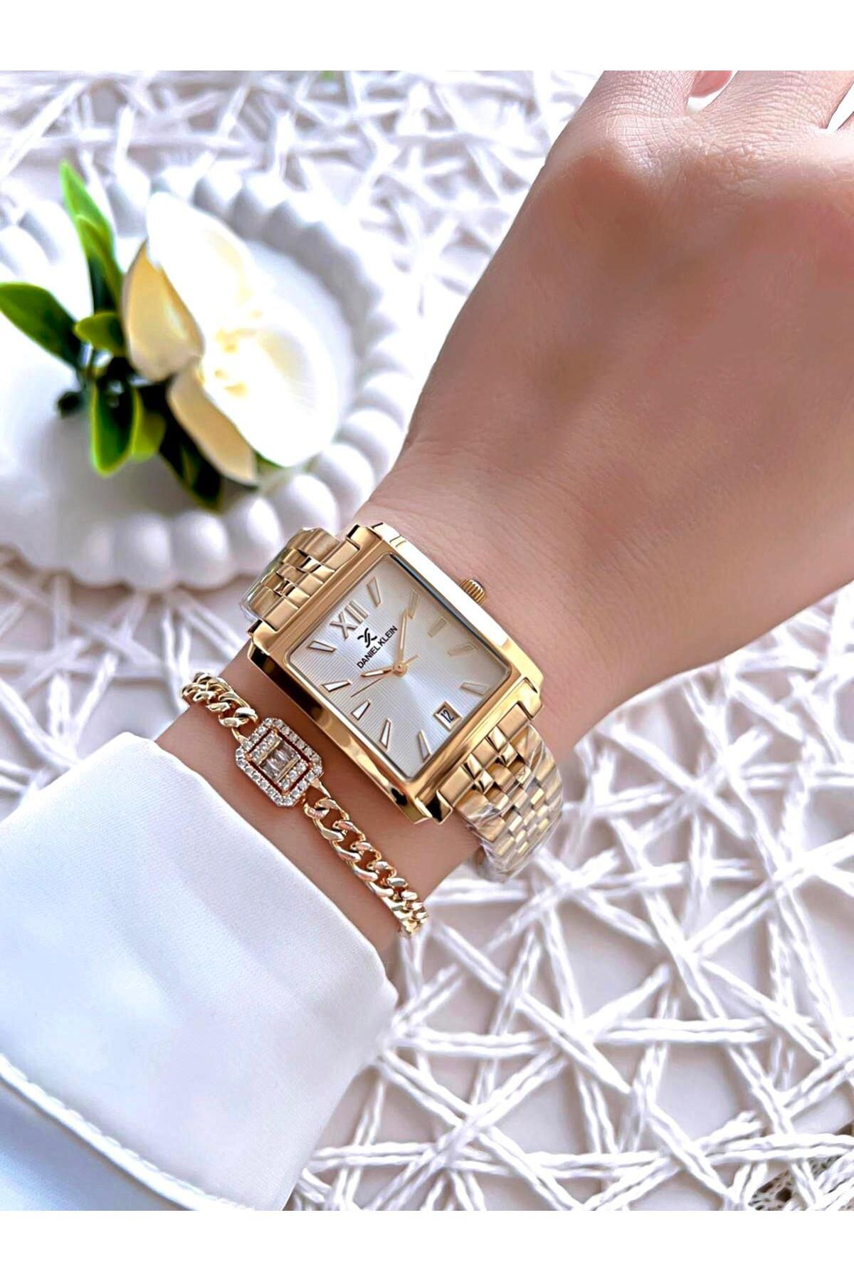 2 daniel klein çelik kordon kadın kol saati 30 mt suya dayanıklı +bileklik saat özellikleri: Kategori: (kadın ) kol saati kordon :Çelik ( kararma renk atma yapmaz ) kasa: Iyon kaplama cam : Mineral cam su : 3 atm ( 30 mt suya dayanıklı ) kadran :Beyaz (tasarım model) kordon:Sarı ( gold ) kasa renk:Sarı ( gold )