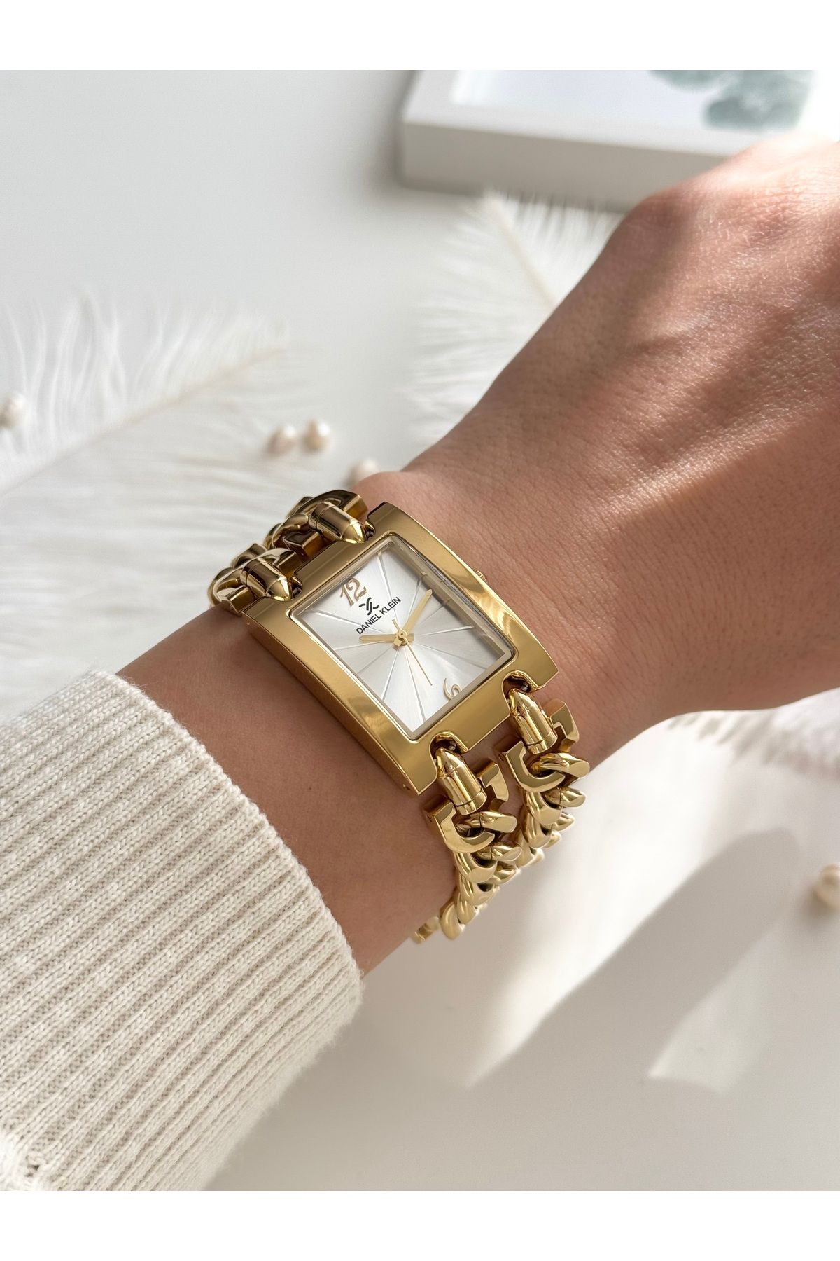 Daniel Klein Altın Renk Çift Zincirli Kadın Kol Saati ürünü ucuz fiyat, hızlı kargo imkanı ile hemen sitemizden sipariş verin.