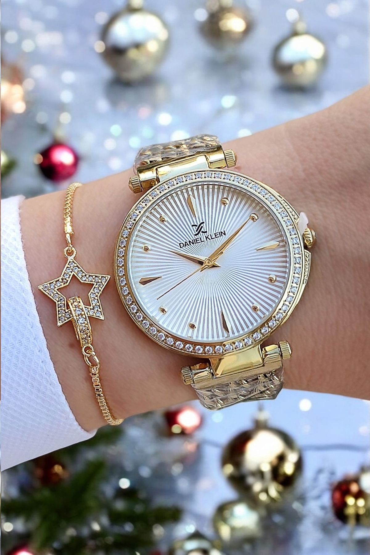 Daniel Klein Altın Sarısı Çelik Bilezik Taşlı Zarif Kadın Kol Saati, Taşlı Bileklik Hediyeli