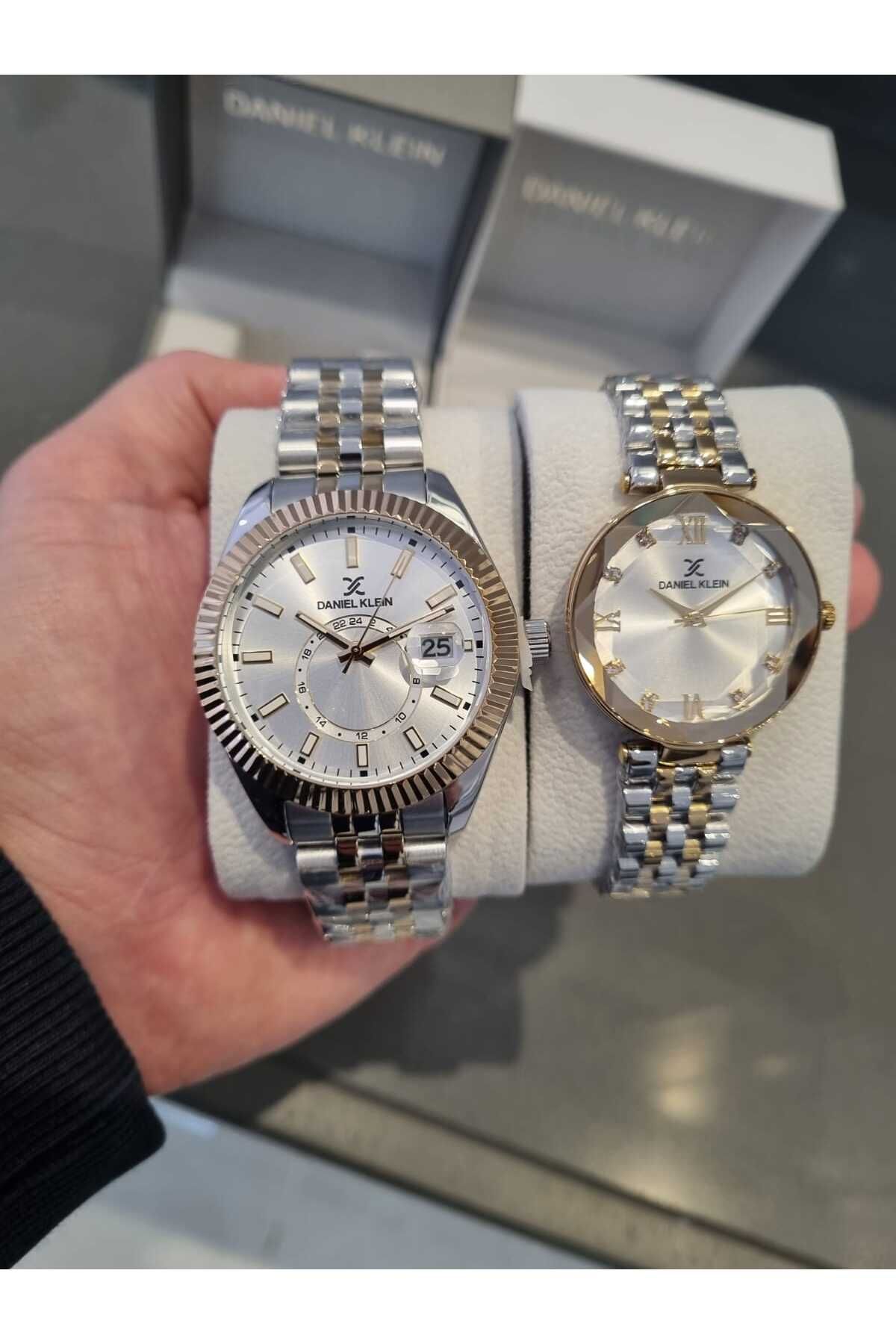 Daniel Klein Çift Sevgili Saati Bileklik Hediyeli Tarihli Gri-Altın Rengi
