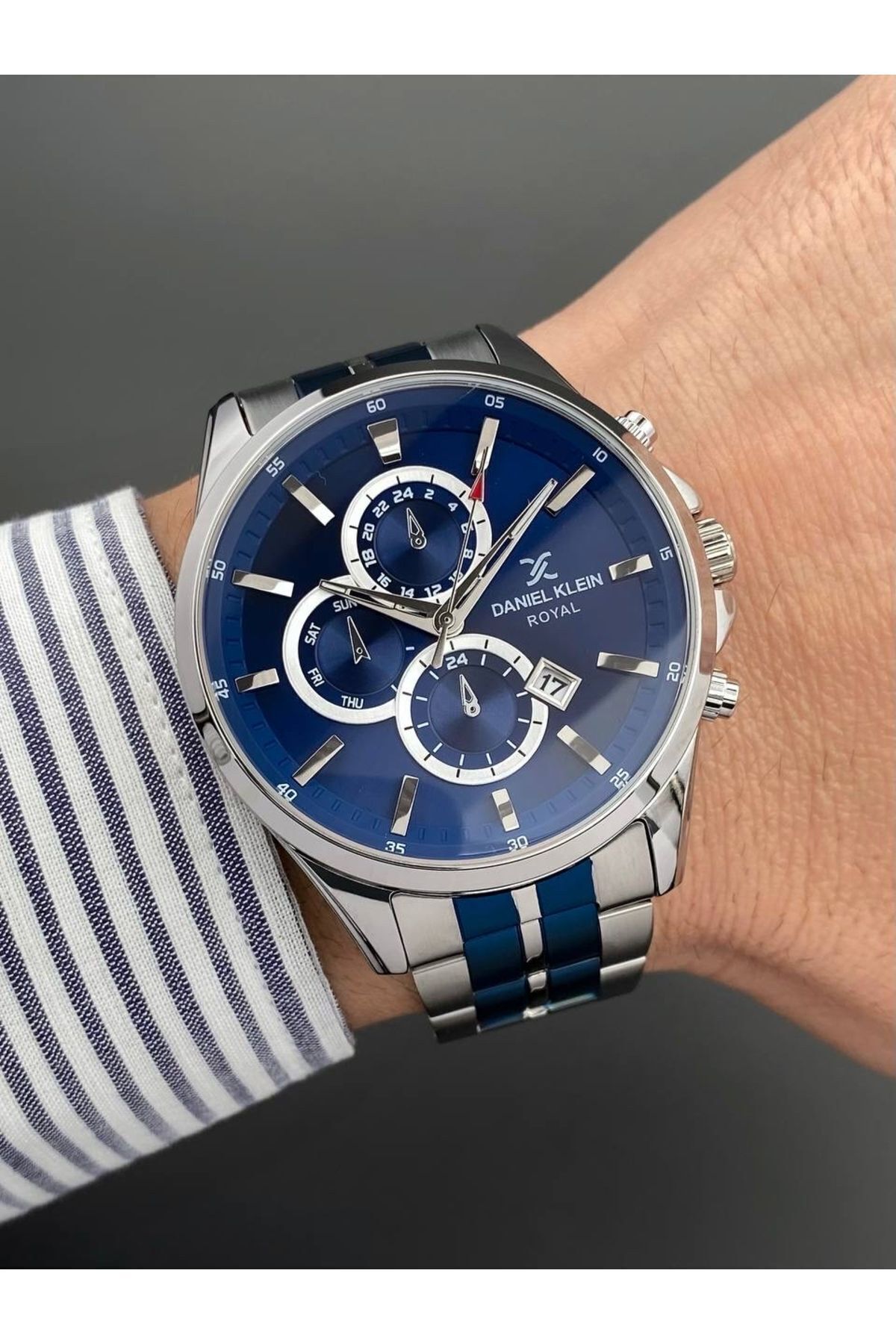 Daniel Klein Erkek Kol Saati Gümüş Lacivert Renk Çelik Kordon 3 Atm Su Geçirmezlik