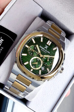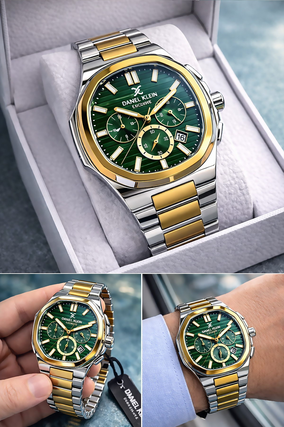 Daniel Klein YENİ MODEL DK - Sarı Bicolor Çelik Bilezik Yeşil Kadran Kadın Kol Saati+hediye Bileklik