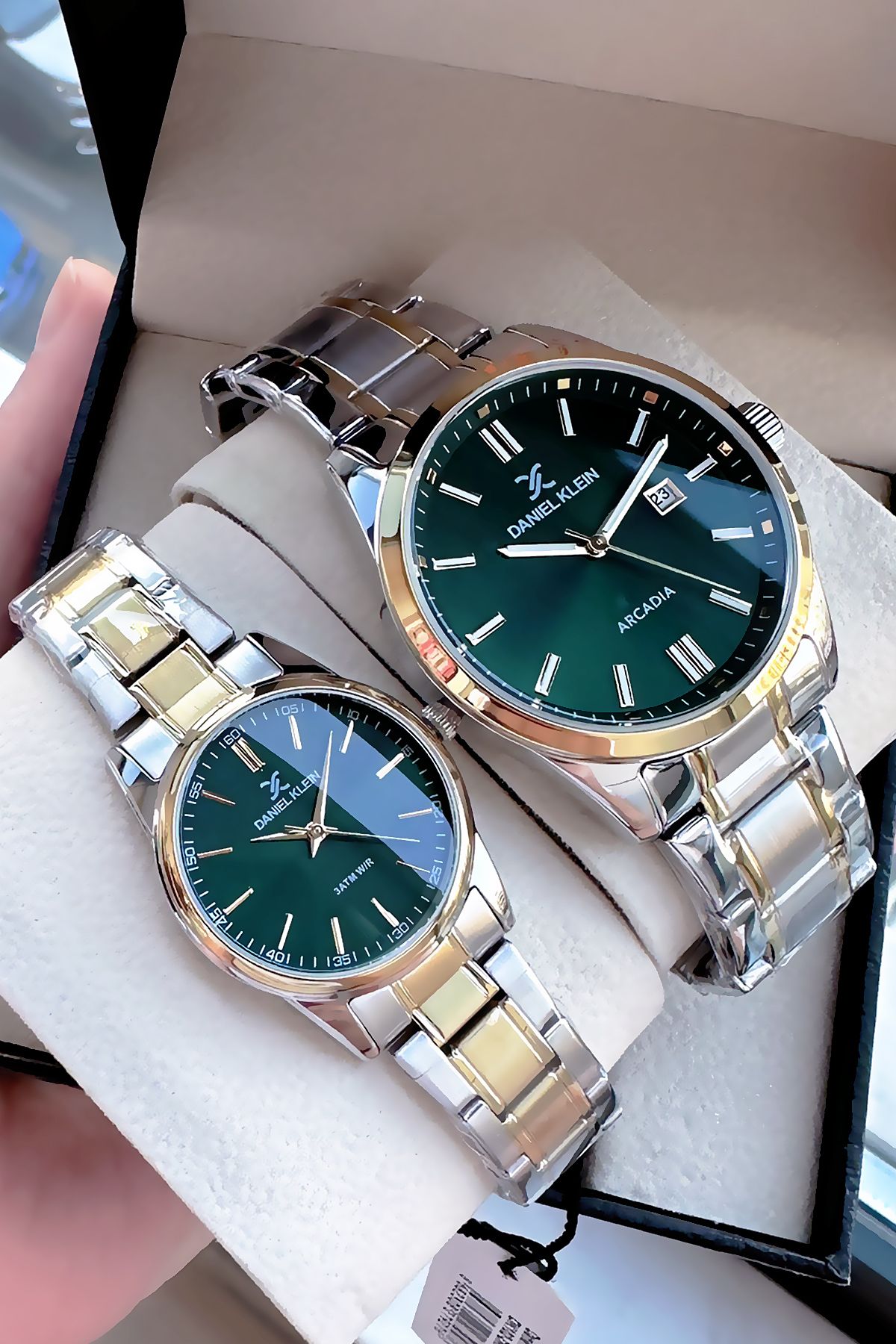 Daniel Klein Hediyelik Bay-Bayan Takım Saat 3 Atm Su Geçirmez İki Renk Çelik Kordon Hediye Bileklik DKE2114C4
