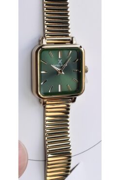 Daniel Klein Kadın Altın Kare Çerçeve Hasırlı Metal Kordon Kol Saati – Yeşil Kadran Modern Tasarım