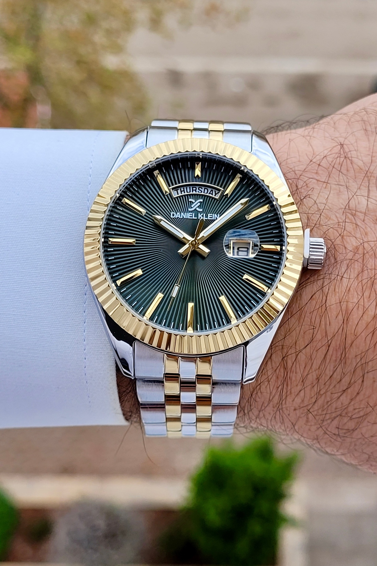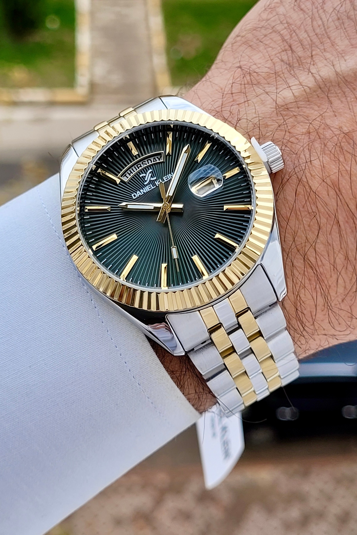 Daniel Klein Kadranı Yeşil Kordonu Gold Gümüş Renk Fonksiyonlu Erkek Kol Saati