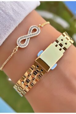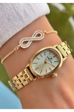Daniel Klein Marka Altın Renk 2 Yıl Garantili Küçük Kasa Kadın Kol Saati – Bileklik Hediyeli