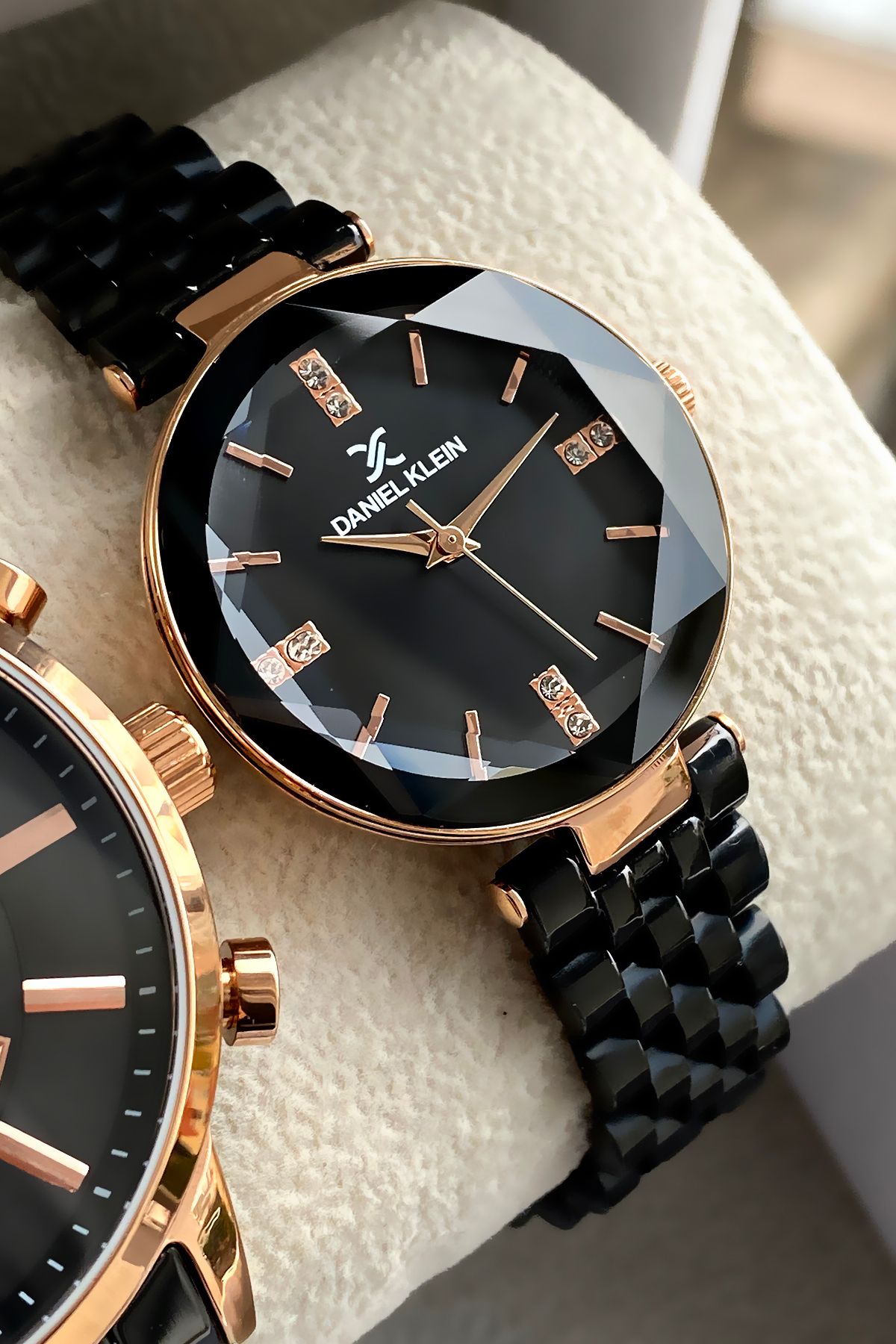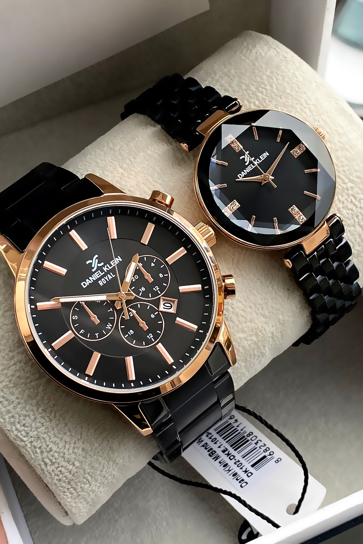 Daniel Klein Orijinal 2 Yıl Garantili Çift Sevgili Kol Saati Siyah Kordon Çelik Su Geçirmez Bileklik Hediyeli