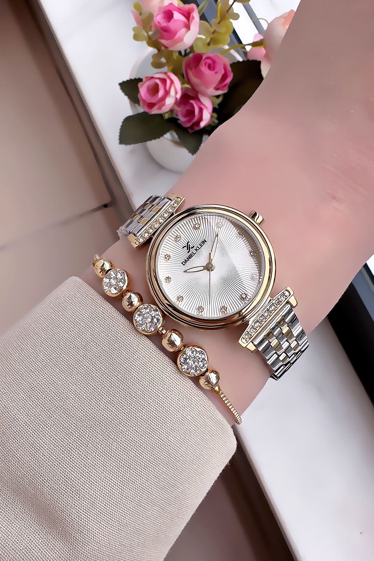 Daniel Klein Orijinal Yeni Sezon Kesme Cam Kadın Kol Saati Gold Gumus Çelik Kordon Hediye Bileklik DKBY2027C2