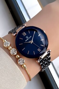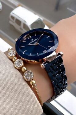 Daniel Klein Orijinal Yeni Sezon Kesme Cam Kadın Kol Saati Lacivert Çelik Kordon Hediye Bileklik Dkby2027c5