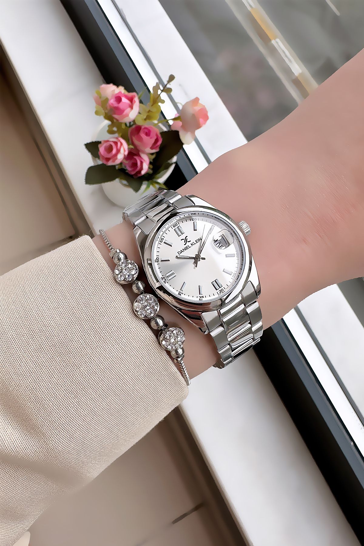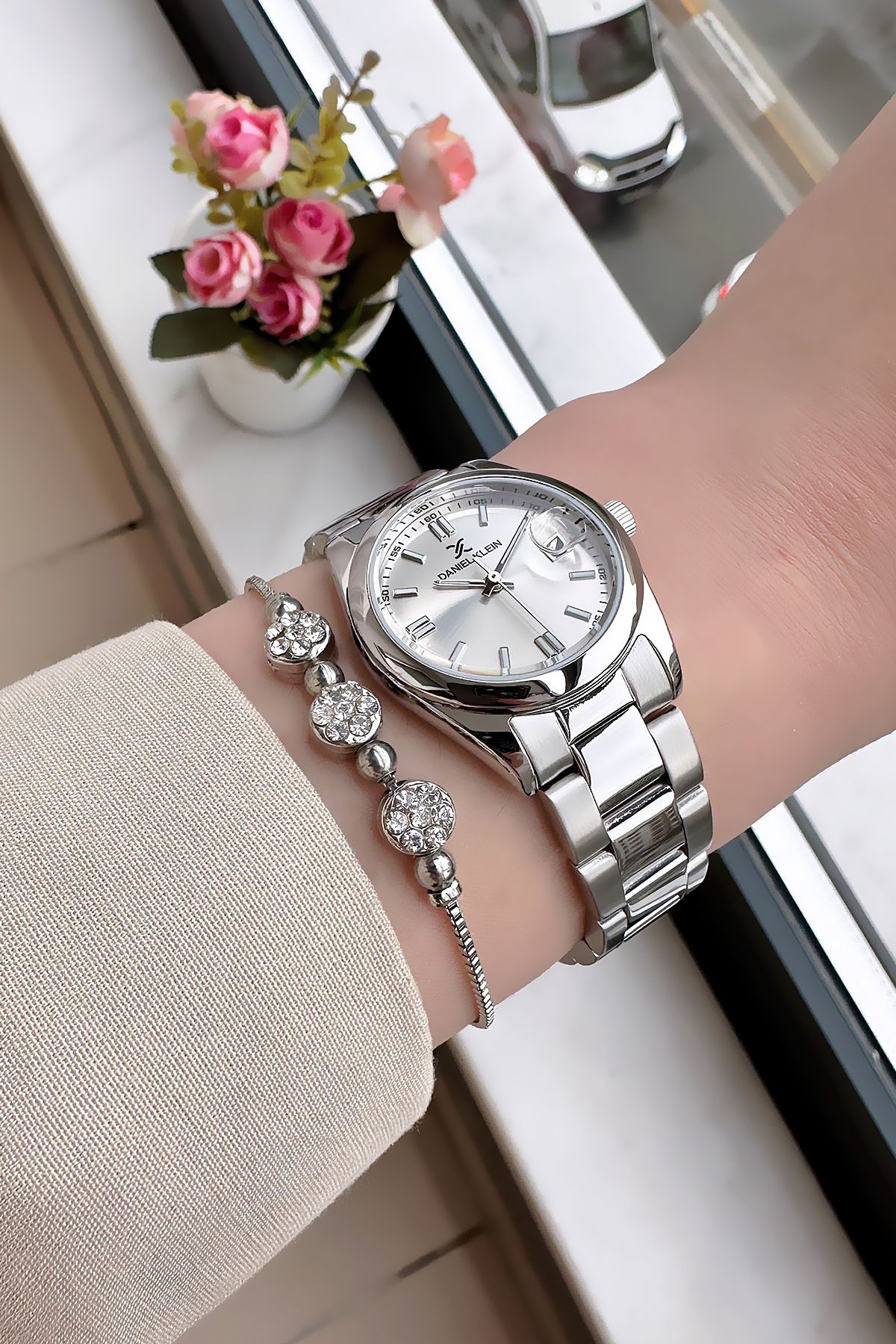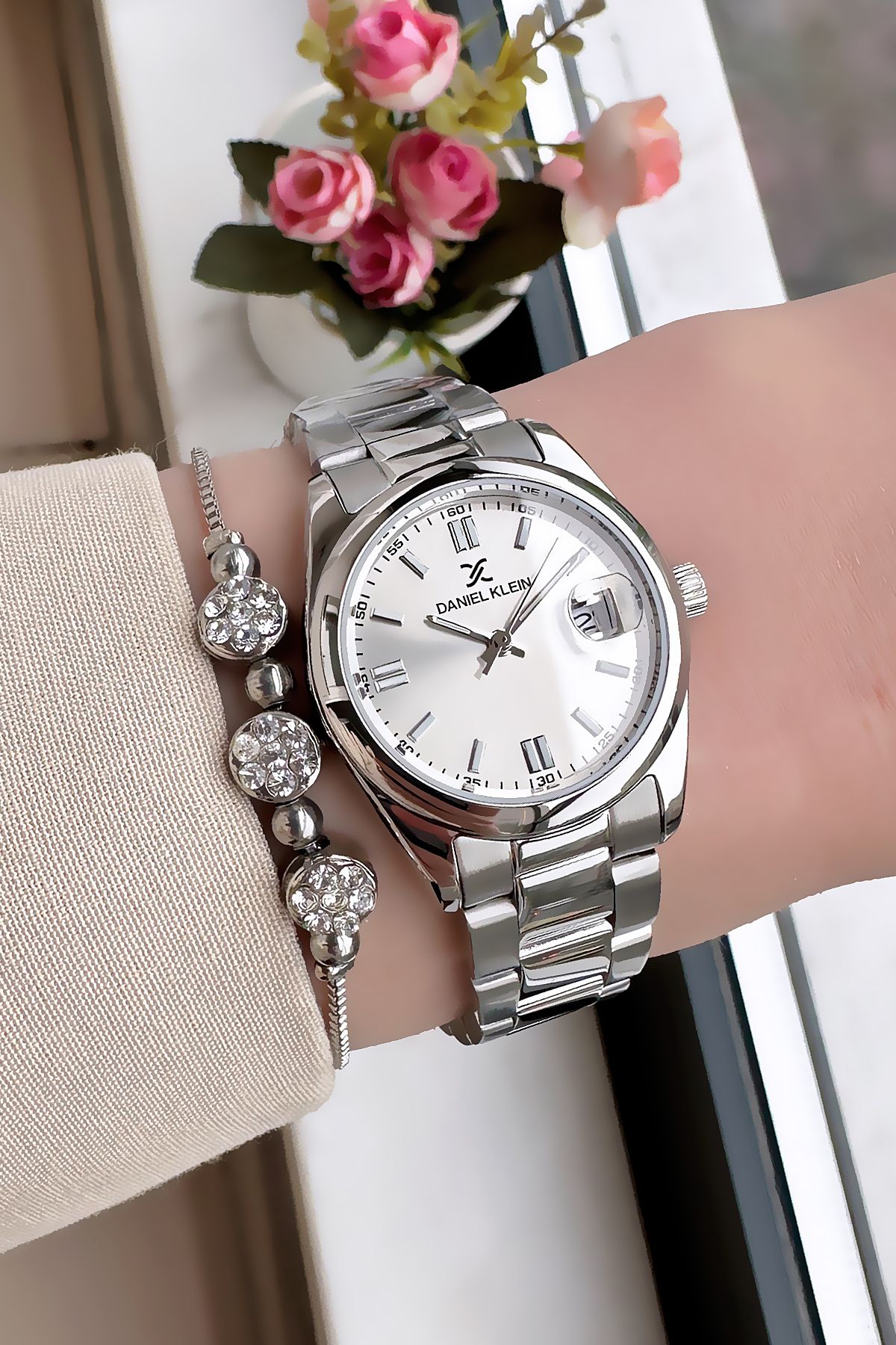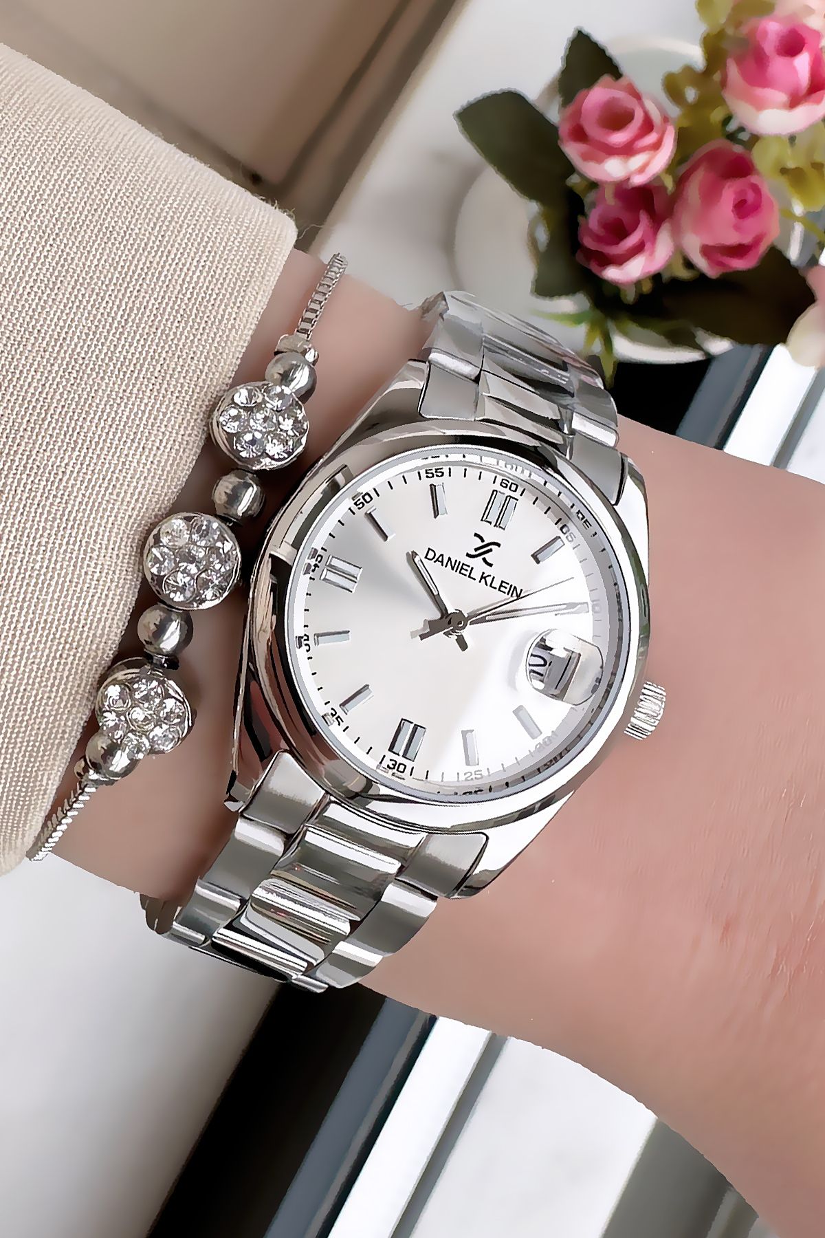 Daniel Klein Vintage Kasa Su Geçirmez Kadın Kol Saati Gümüş Renk Çelik Kordon Hediye Bileklik DKBY2033C3