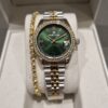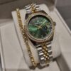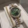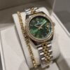Daniel Klein YENİ MODEL DK – Sarı Bicolor Çelik Bilezik Yeşil Kadran Kadın Kol Saati+hediye Bileklik