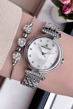 Daniel Klein Yeni Sezon Kesme Cam Kadın Kol Saati Gümüş Renk Çelik Kordon Hediye Bileklik Dkby2027c3