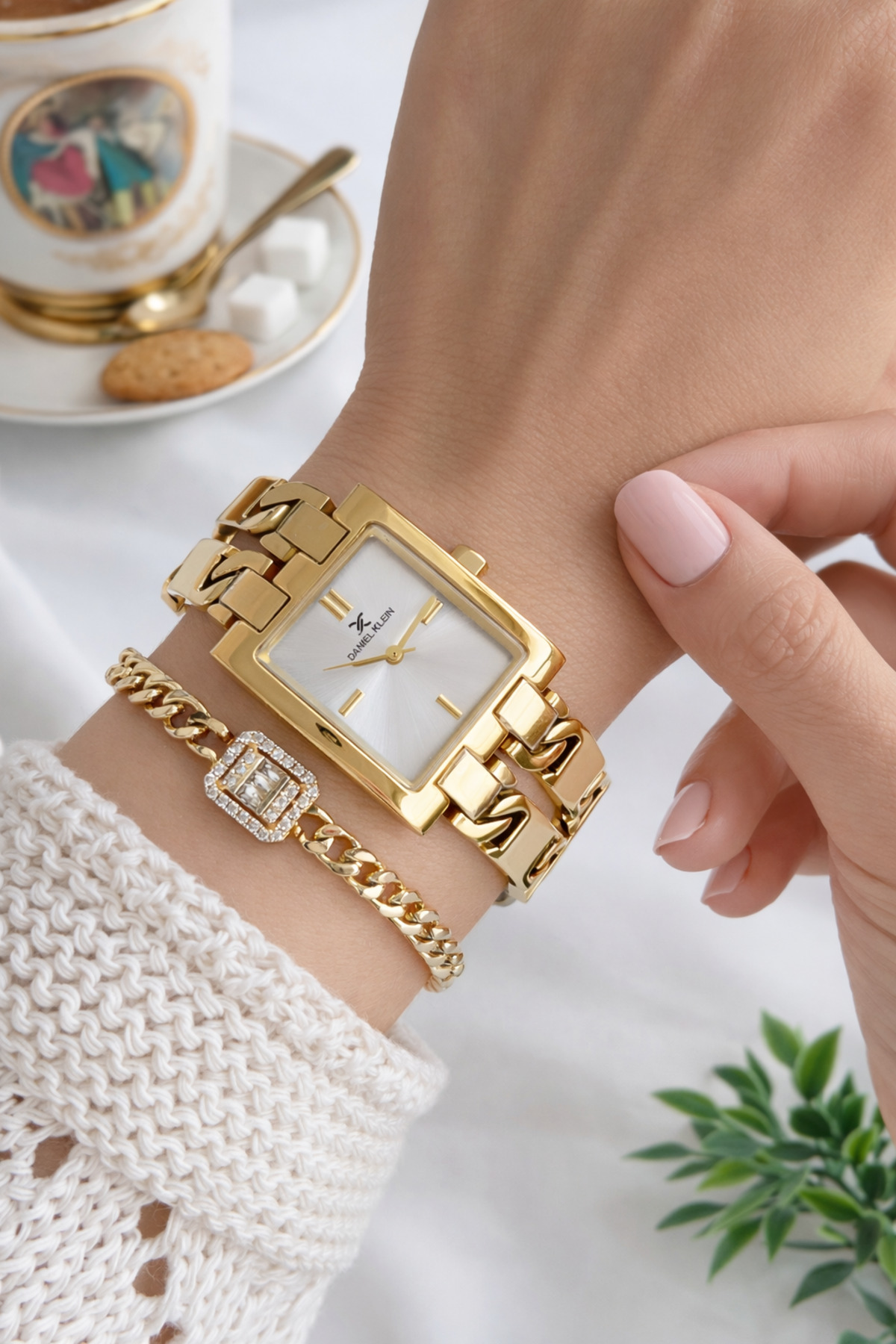 Daniel Klein Zincirli Desenli Efsane Model Çelik Kordon 30 Mt Suya Dayanıklı Kadın Kol Saati Bileklik