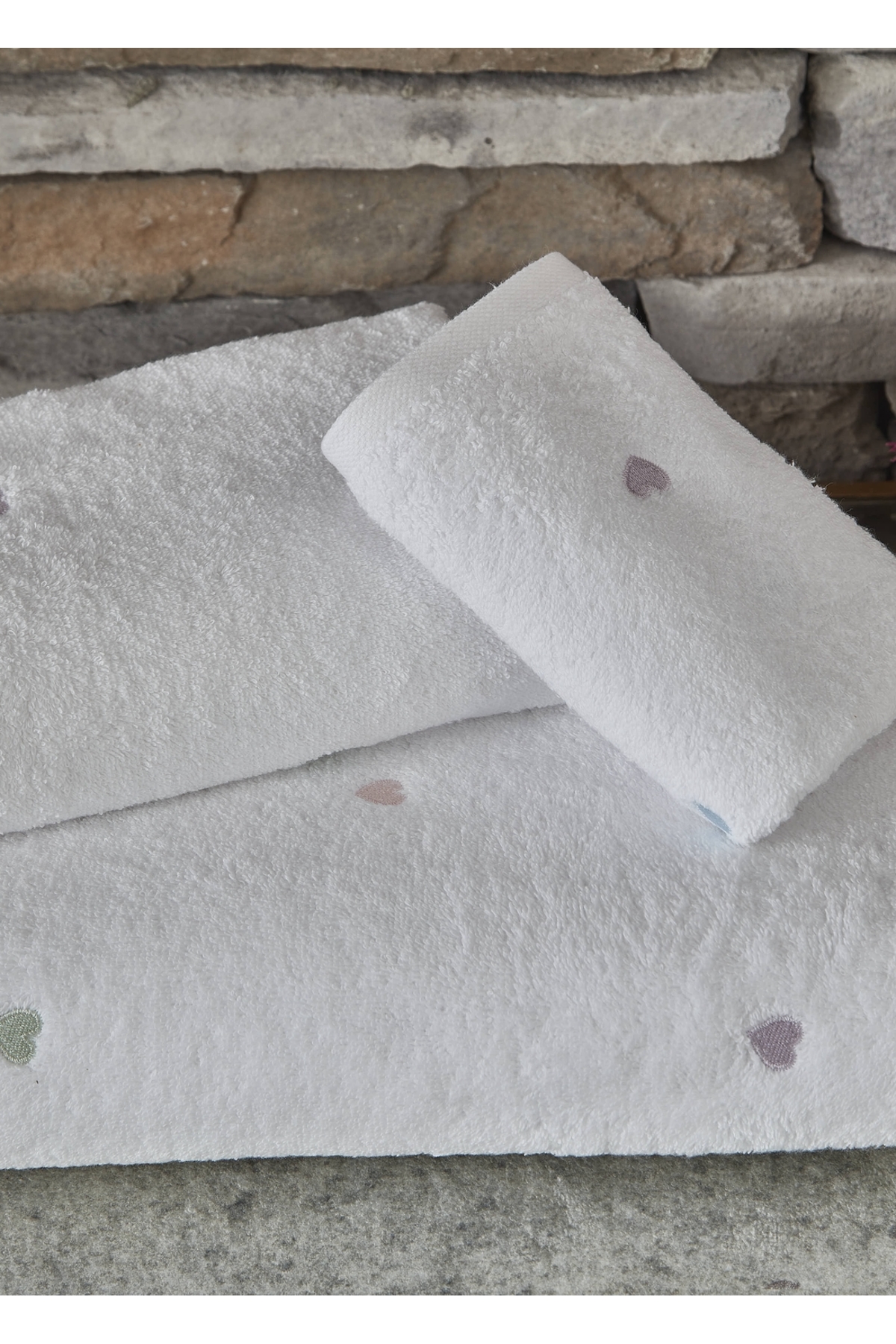 Dantela Kod-9950 Pamuk Nakışlı 3 Parça Banyo Havlu Seti – Beyaz