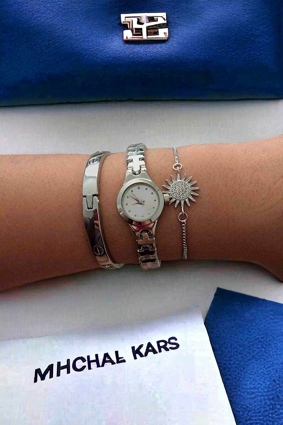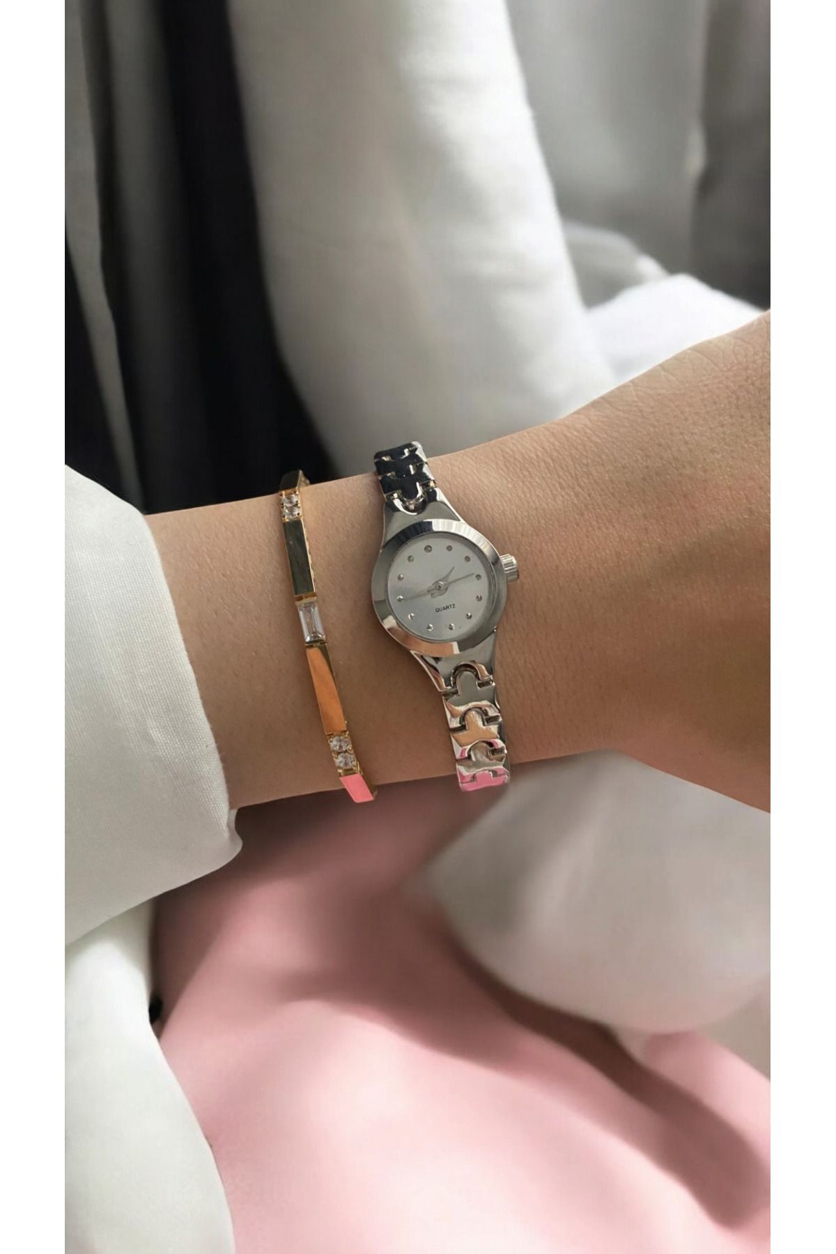 50 cm gümüş renk özel seri minimal kol saati, ince bilekler için ideal bir aksesuar seçeneği sunar
