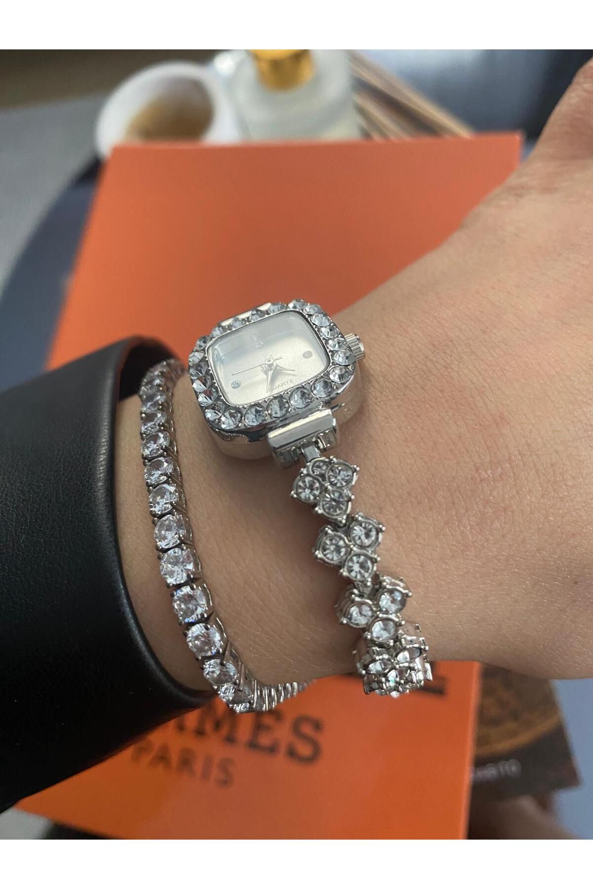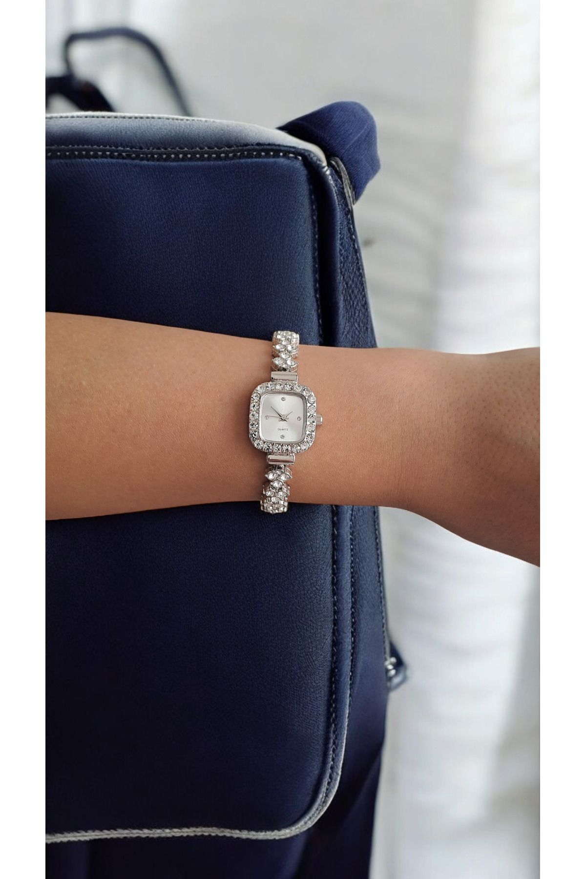 DARK BLANC Gümüş Renk Vintage Taşlı Kol Saati