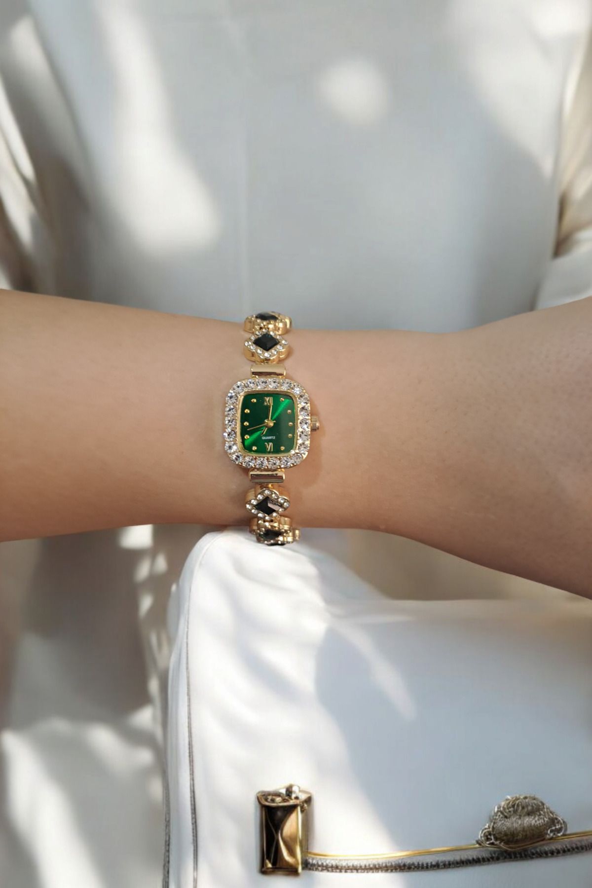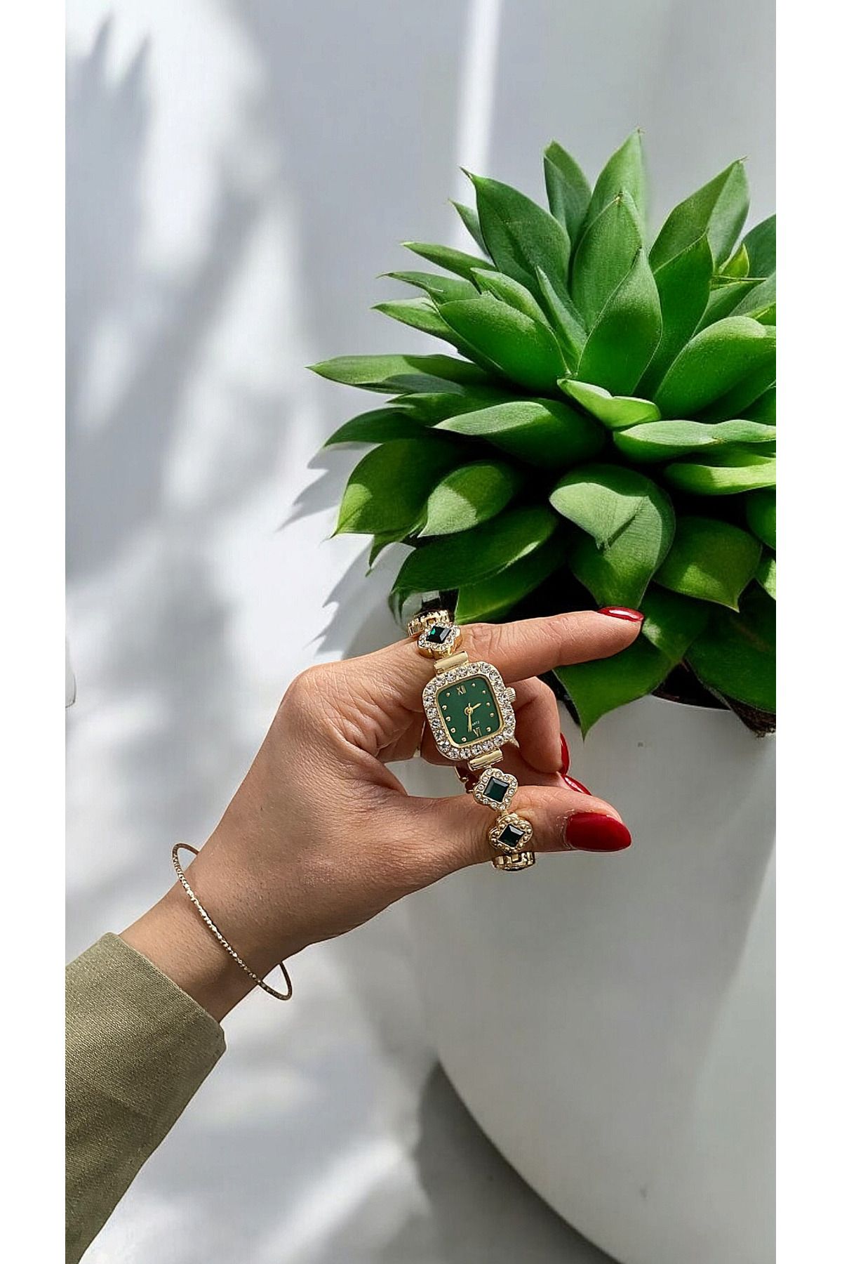 Klasik ve zamansız tasarımıyla dikkat çeken renkli taşlı vintage saat, her kıyafetle uyum sağlar