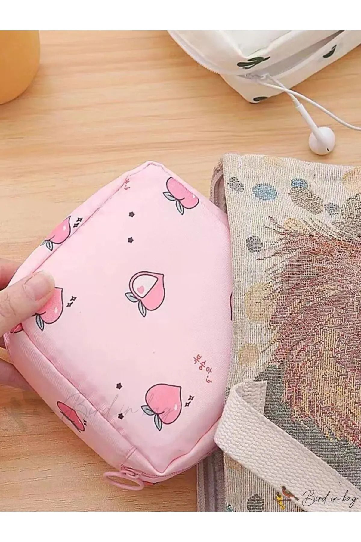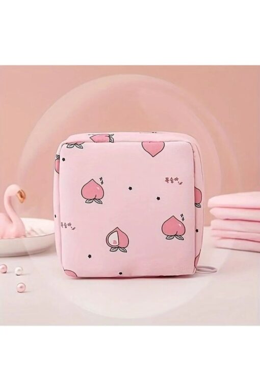 daystar Sevimli Şeftali Desenli Çok Amaçlı Ped Çantası, Makyaj Çantası, Kozmetik Çantası, Toka Çantası