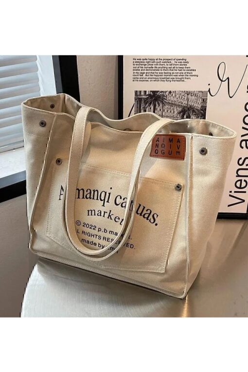 DE PLEIN Canuas Bej Organik Kanvas Kumaş Tote Cepli Büyük Omuz Çantası en ucuz fiyata kozmetikara.com sitemizden sipariş verebilirsiniz.