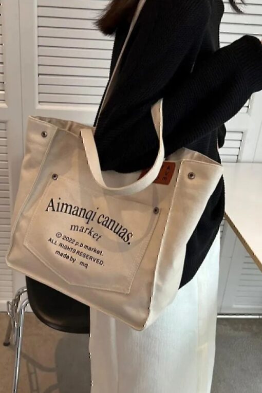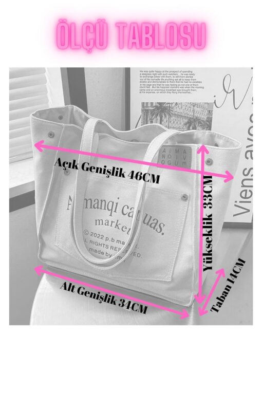 DE PLEIN Canuas Bej Organik Kanvas Kumaş Tote Cepli Büyük Omuz Çantası için 1 değerlendirme