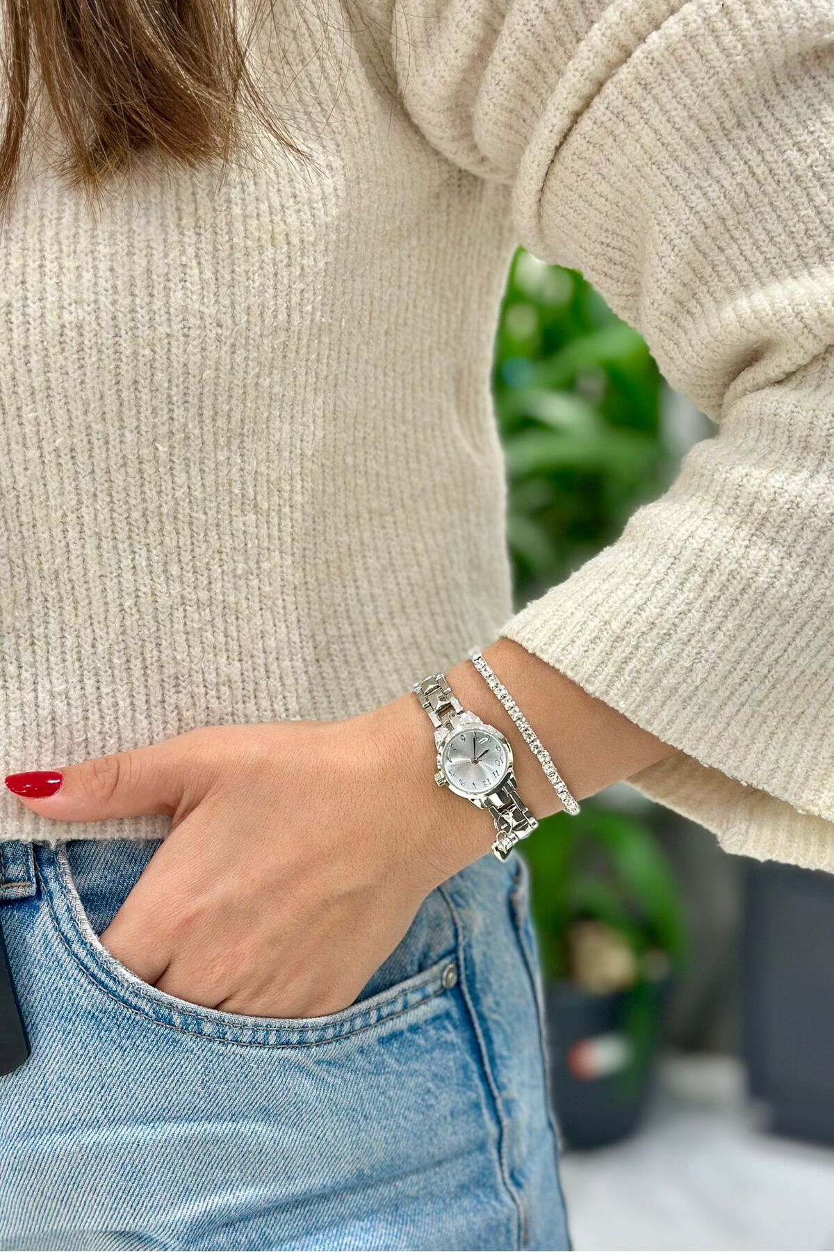 Arzu Butik Gold Renk Metal Kordon Kadın Kol Saati Ve Kombin Bileklik Seti