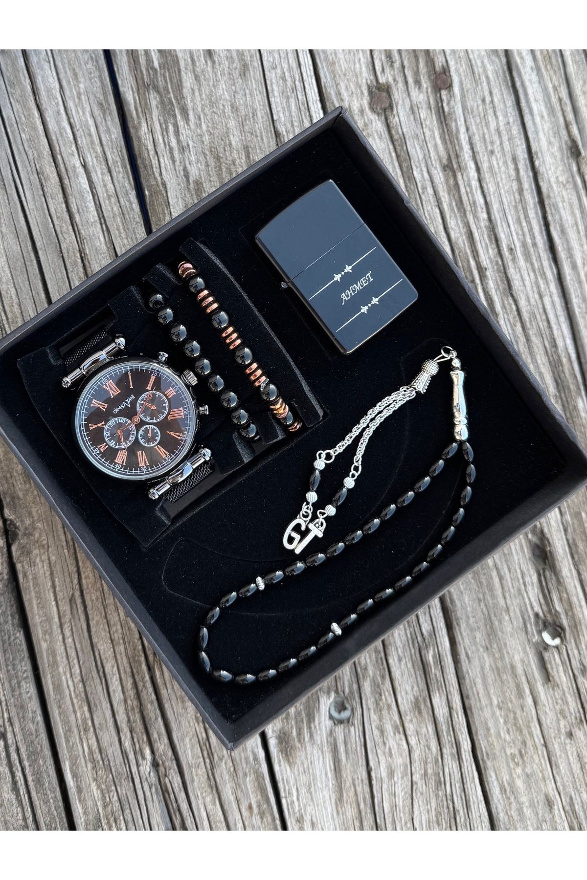 Ürün İçeriği: 1adet saat 2 adet bileklik 1 adet tesbih 1 adet çakmak