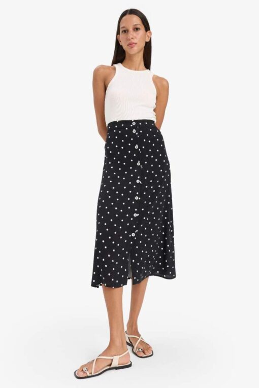 DeFacto A Form Desenli Düğmeli Normal Bel Midi Etek Z8094az25sm