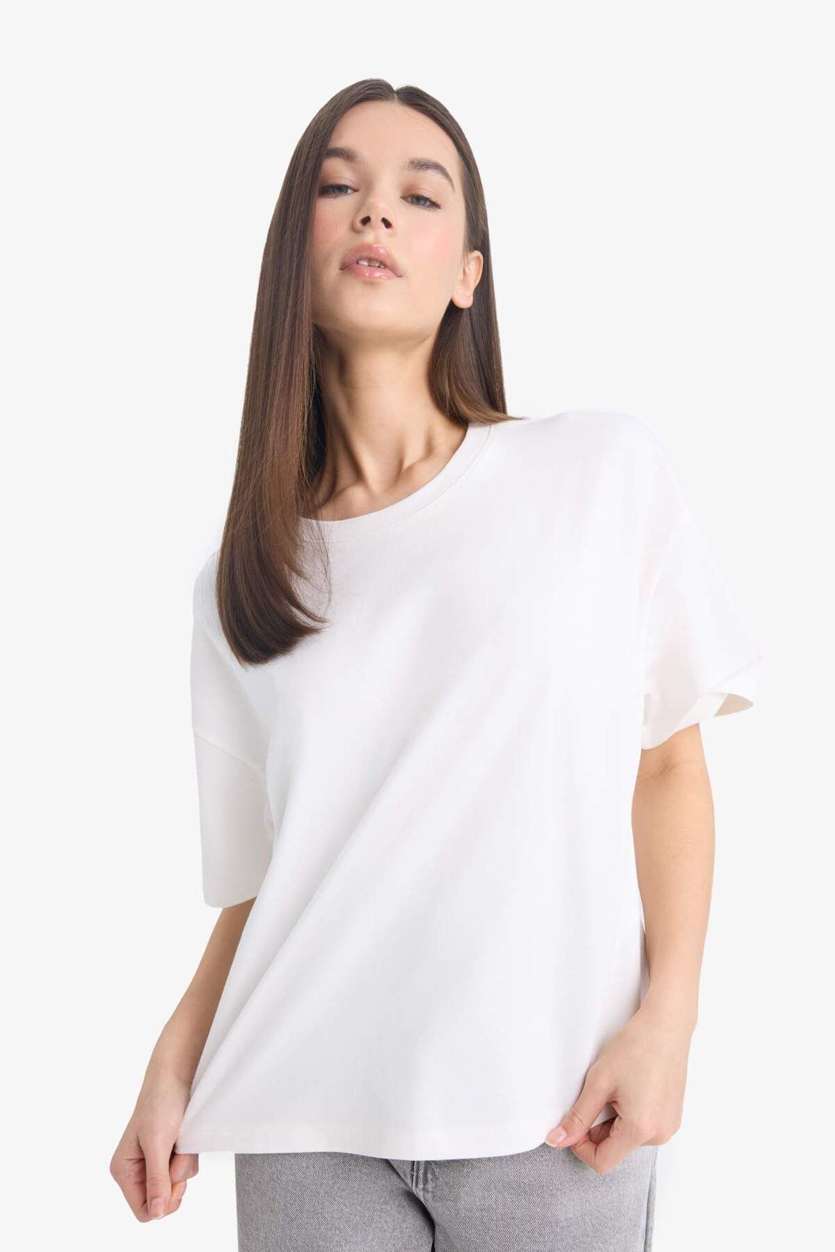 DeFacto Coool Loose Fit Basic Düz Kısa Kollu Beyaz Tişört F4603axns