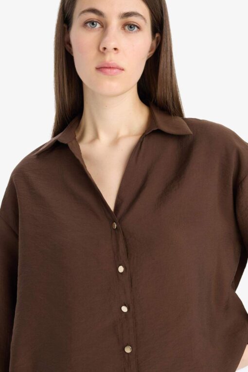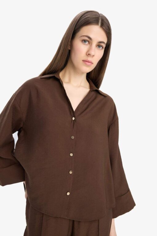 Ana Sayfa » kozmetikara.com » Giyim » Üst Giyim » Gömlek » DeFacto Loose Fit Apaşk Yaka Basic Düz Uzun Kollu Gömlek E9007ax25sp