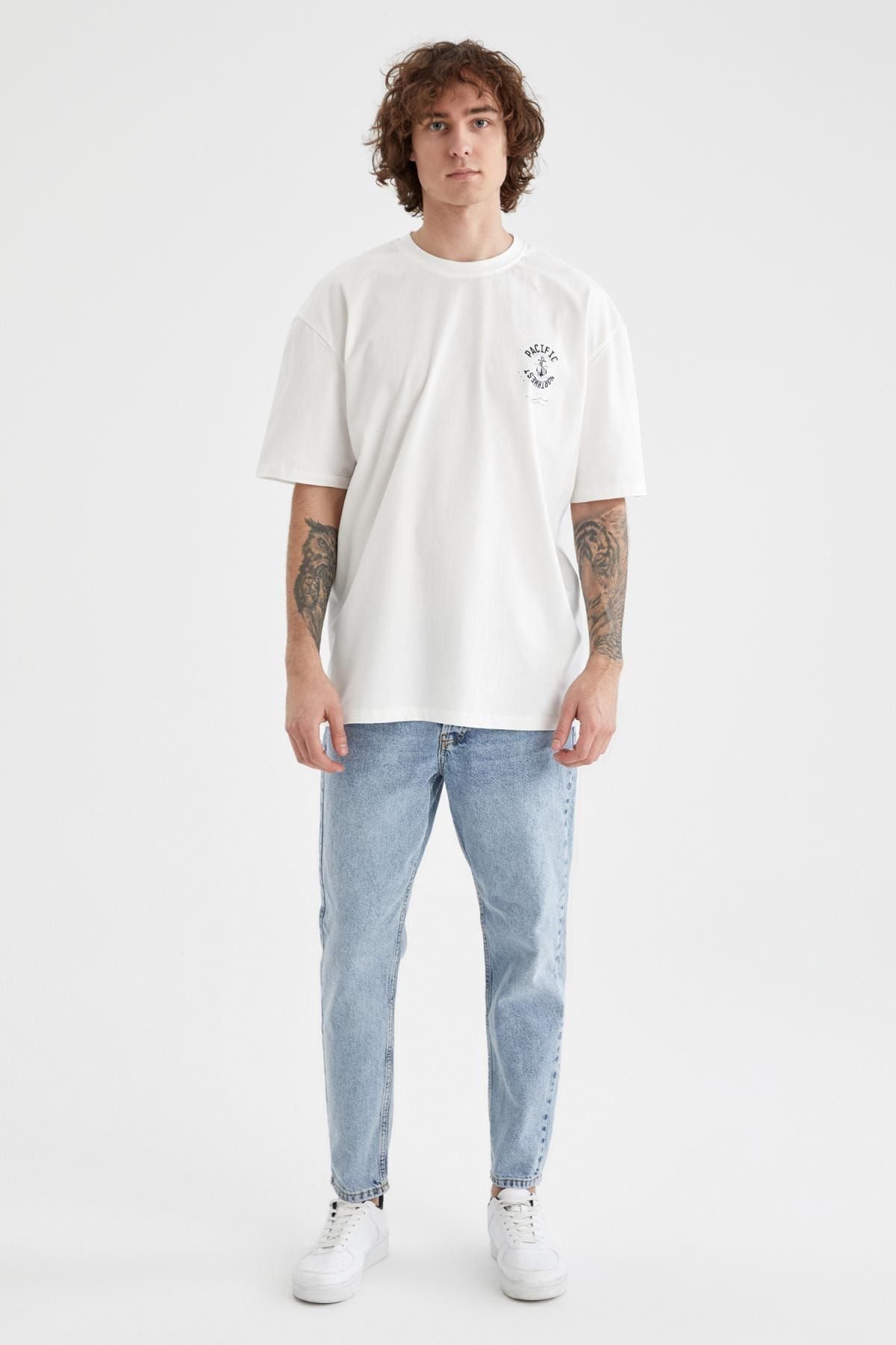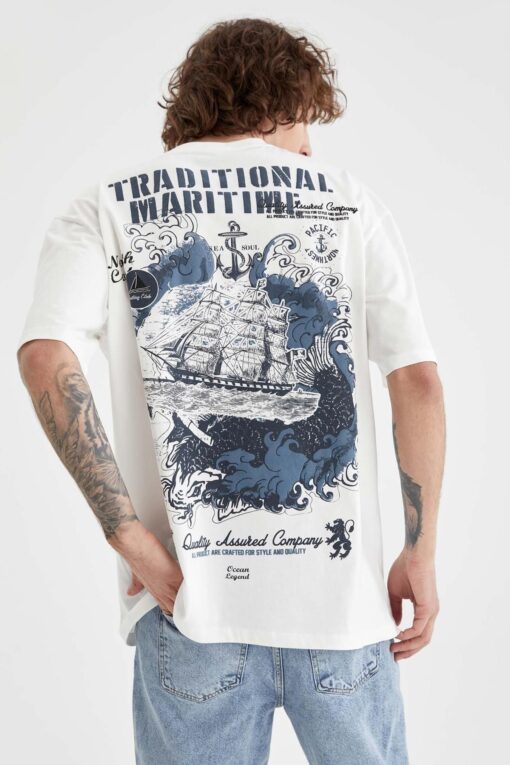 DeFacto Oversize Fit bisiklet Yaka Marin Sırt Baskılı Tişört