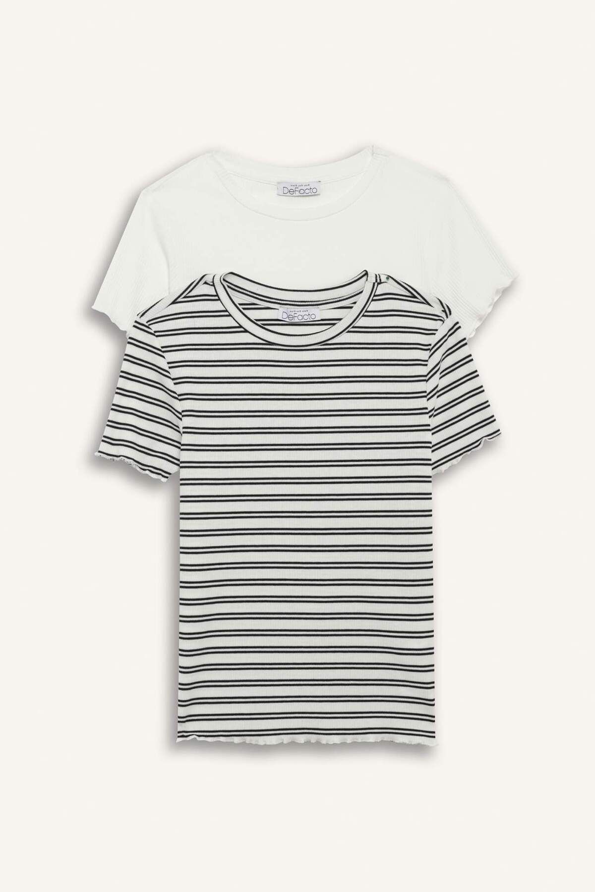 DeFacto Regular Fit Bisiklet Yaka 2’li Fitilli Kaşkorse Kısa Kollu Tişört F5900ax25sm