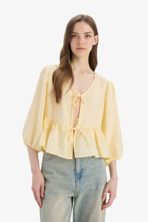 DeFacto Regular Fit V Yaka Modal Önden Bağlamalı Uzun Kollu Bluz D4435ax25sp Fiyatları, Özellikleri ve Yorumları