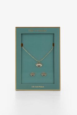 DeFacto Reis x 14 Ayar Altın Kaplama Sole Mare Kadın Nazar Göz Temalı Gold Kolye Küpe Seti F3953AXNS