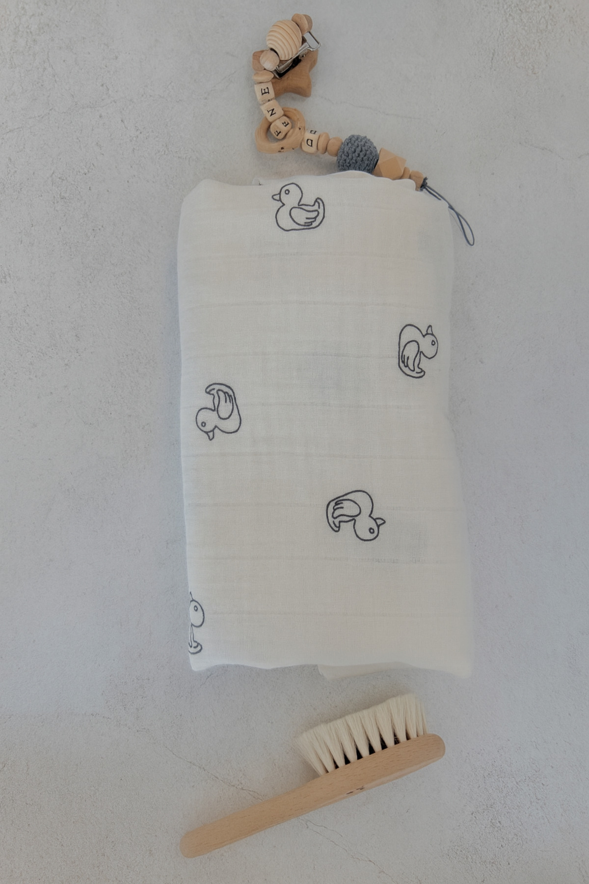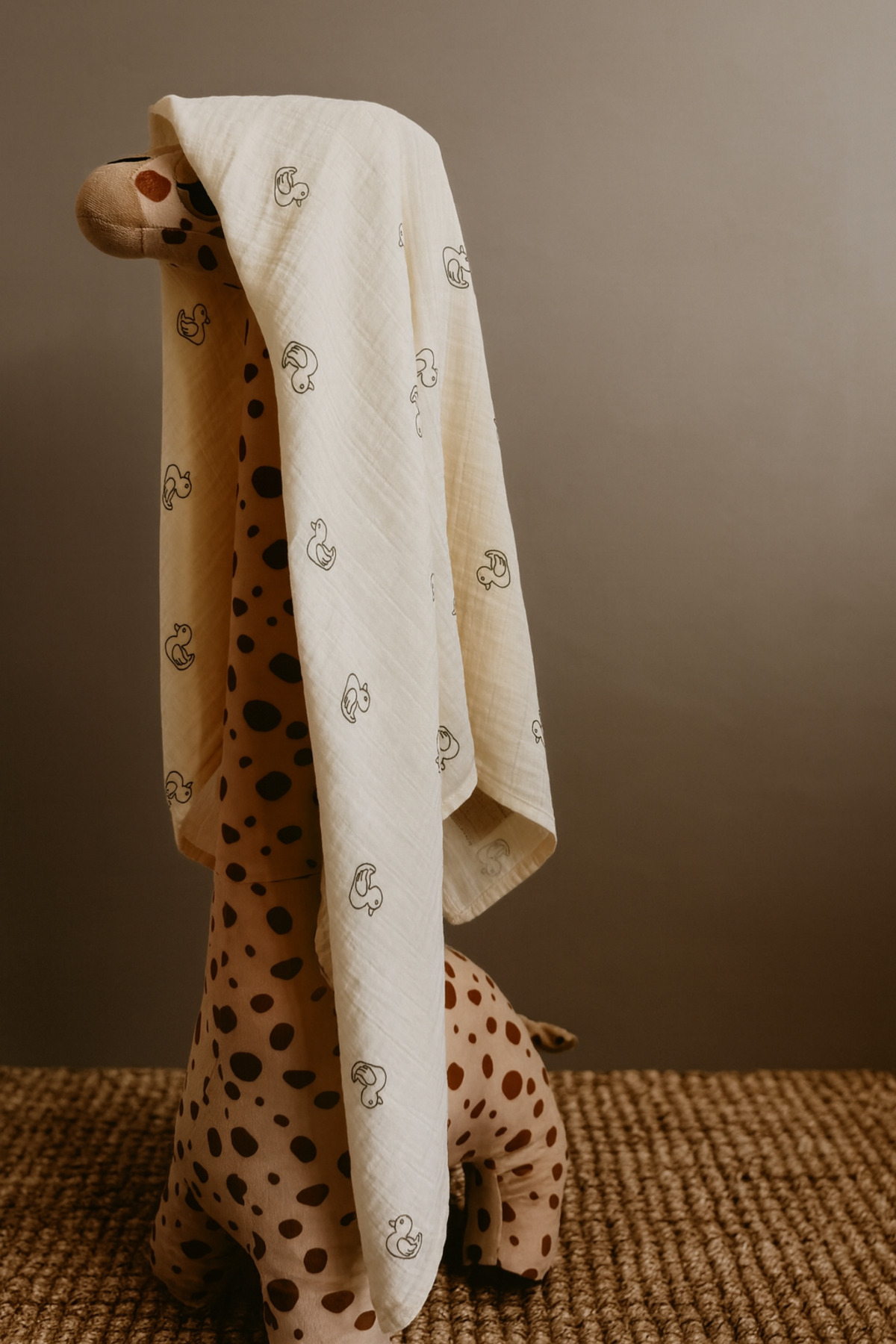DEFNİE’S DUCK Çift katlı %100 Pamuk, Müslin Bebek Örtüsü, Büyük boy 100x100cm, OEKO-TEX Sertifikalı